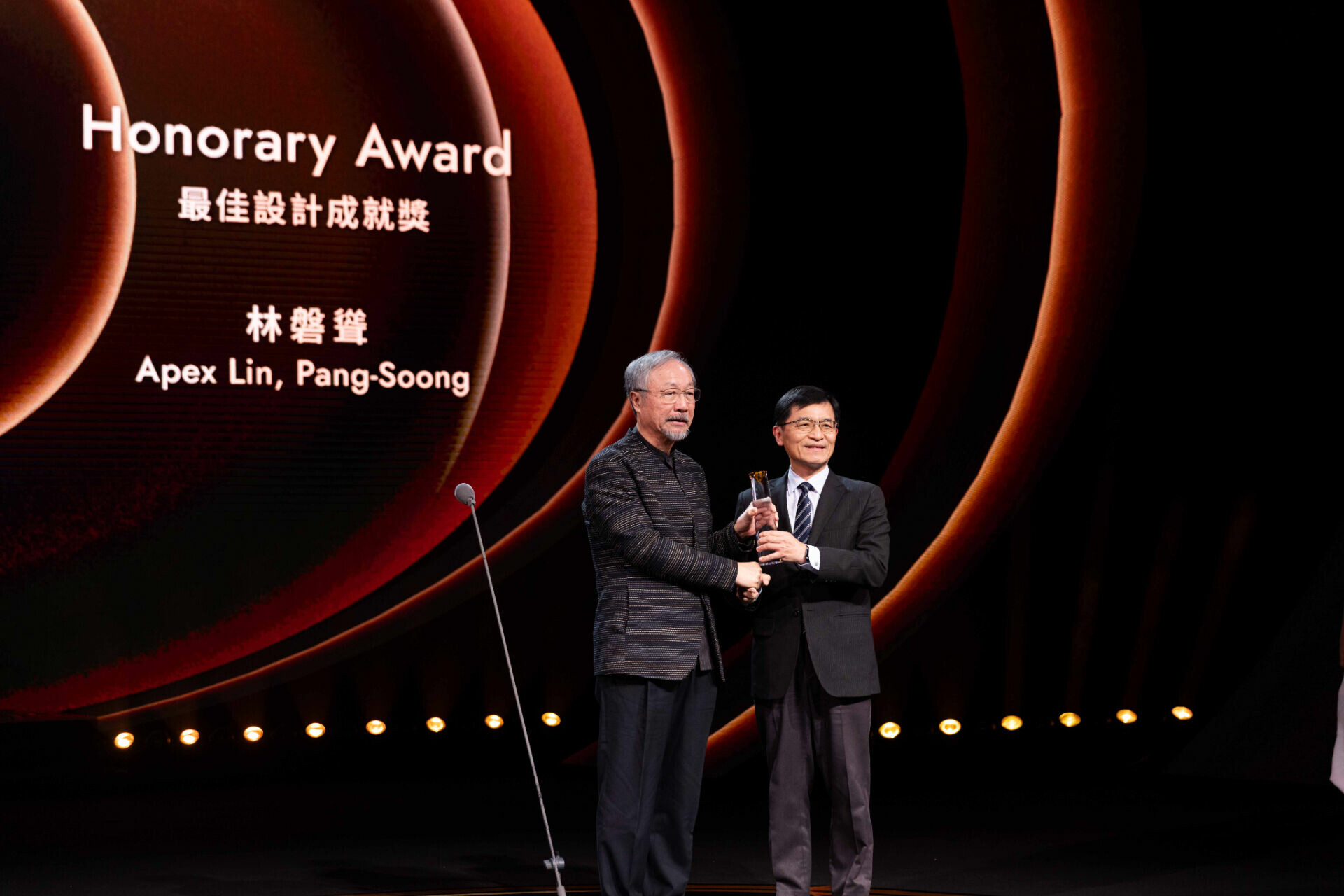 「最佳設計成就獎」頒予亞洲大學數位媒體設計系講座教授、國立臺灣師範大學設計系名譽教授林磐聳,表彰其為台灣設計實踐、教育推廣與國際交流的深遠貢獻。2025年金點設計獎擔任決審評審的 Uwe Cremering 表示,此次來台參與評選,看見金點設計獎多元且具深度的參賽作品,讓他相當振奮又充滿啟發。他也指出,今年許多入圍作品不僅在美學與創新上表現突出,也能回應真實世界的需求與議題,而評審團特別關注設計是否具備使用者導向思維、清晰而一致的執行品質與美學,以及能否帶來具意義的影響力,皆是獲獎作品的共同特質。